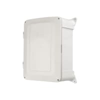 Гермобокс Rexant 260×340×150 (28-4009) снабжен дверкой на петлях с резиновым уплотнением по периметру.