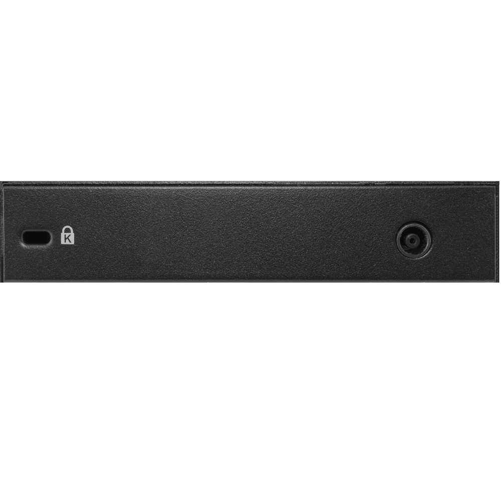 Пропускная способность коммутатора достигает 1.8 Гбит/с. Корпус выполнен из металла и имеет компактные размеры (130×85×26 мм) при весе 0,3 кг.
