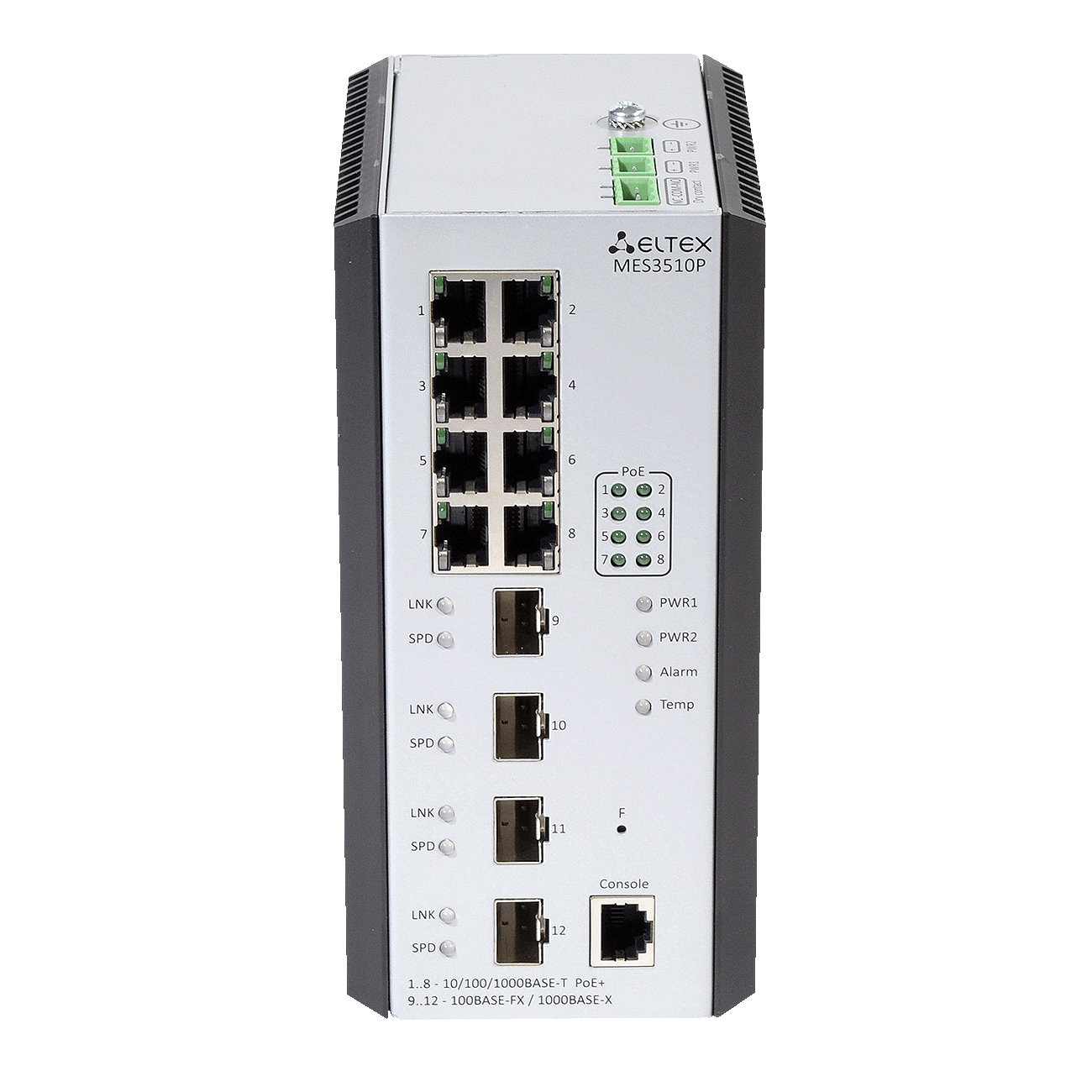 * Интерфейсы: 8 портов Gigabit Ethernet с поддержкой PoE/PoE+ и 4 порта SFP для подключения оптоволоконных кабелей