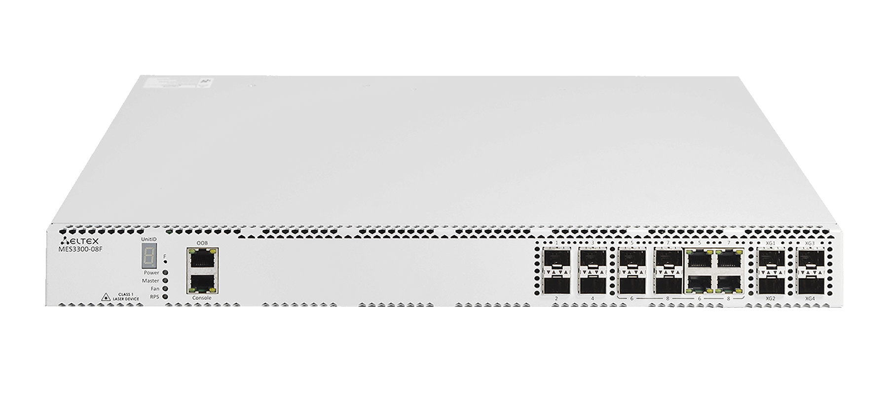 Коммутатор MES3300-08F представляет собой высокопроизводительное решение для построения операторских сетей. Его функциональные возможности позволяют использовать его в качестве коммутатора уровня агрегации района или транспортного коммутатора.