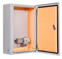 Данный шкаф изготовлен из стали и обладает степенью защиты IP66, что гарантирует его надежную работу в уличных условиях. Шкаф оснащен предстартом и системой обогрева. Цвет исполнения - серый.