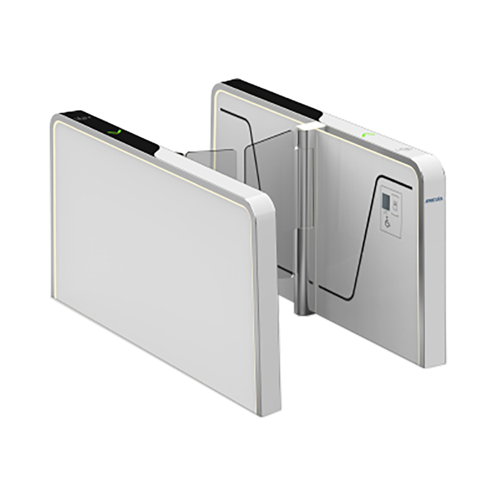 Турникет оснащен 12 парами инфракрасных датчиков, которые точно отслеживают положение человека в проходе, предотвращая случайные травмы и обеспечивая корректную работу створок. LED-индикация улучшает взаимодействие пользователя с устройством. Современный дизайн с использованием закаленного стекла и высокоуглеродистой стали в конструкции корпуса делает этот скоростной турникет не только надежным, но и эстетичным. Верхняя крышка также выполнена из закаленного стекла, что добавляет визуальной лёгкости и презентабельности.