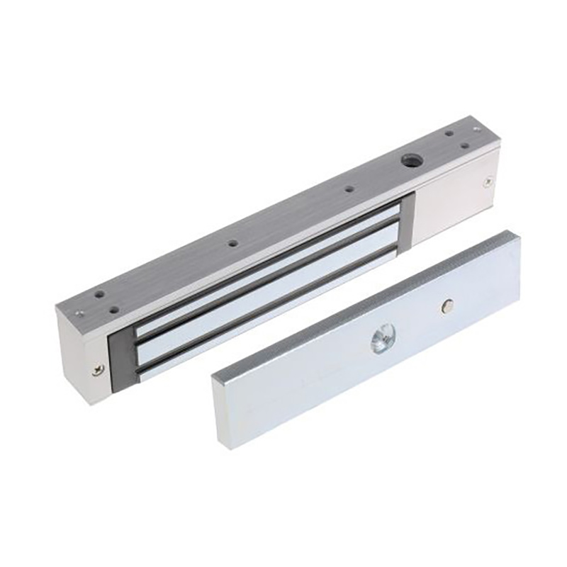 Электромагнитный замок, усилие удержания 350 кг, питание 12V, потребление 0,44А, размеры: 250L*56,5W*27,5H мм, со световой индикацией, планка в комплекте, подключение: питание (+/-), датчик двери (NO/NC/COM), анидированный алюминий.