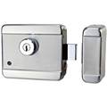 Замок электромеханический AccordTec AT-EL201A моторного типа. Монтаж накладной. Универсальный — на дверь внутрь/наружу, металлический (нержавеющая сталь), питание — DC 12 V, потребление — 3А, наработка на отказ — 3 000 000 циклов открывания/закрывания, изнутри открывается поворотным механизмом, снаружи — ключом. Рабочие температуры: -30 °С… +50 °С.