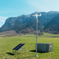 * Надежность: Гибридная система обеспечивает непрерывную работу благодаря комбинированному использованию солнечных панелей и ветряной турбины.