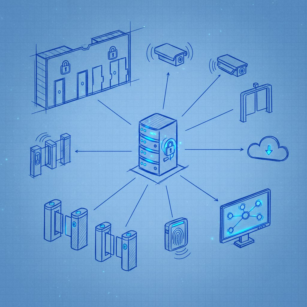 - Выбор оборудования: Считыватели карт, биометрические сканеры, контроллеры, замки (электромагнитные, электромеханические), турникеты, шлагбаумы, программное обеспечение управления и т.д.